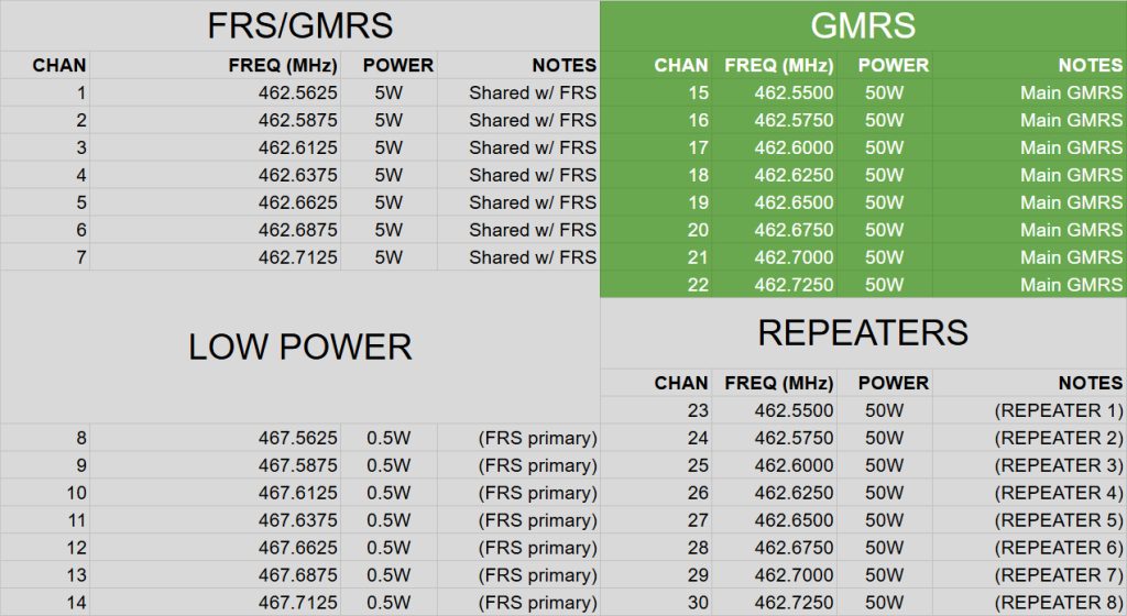 Download the GMRS Frequency & Channel Guide